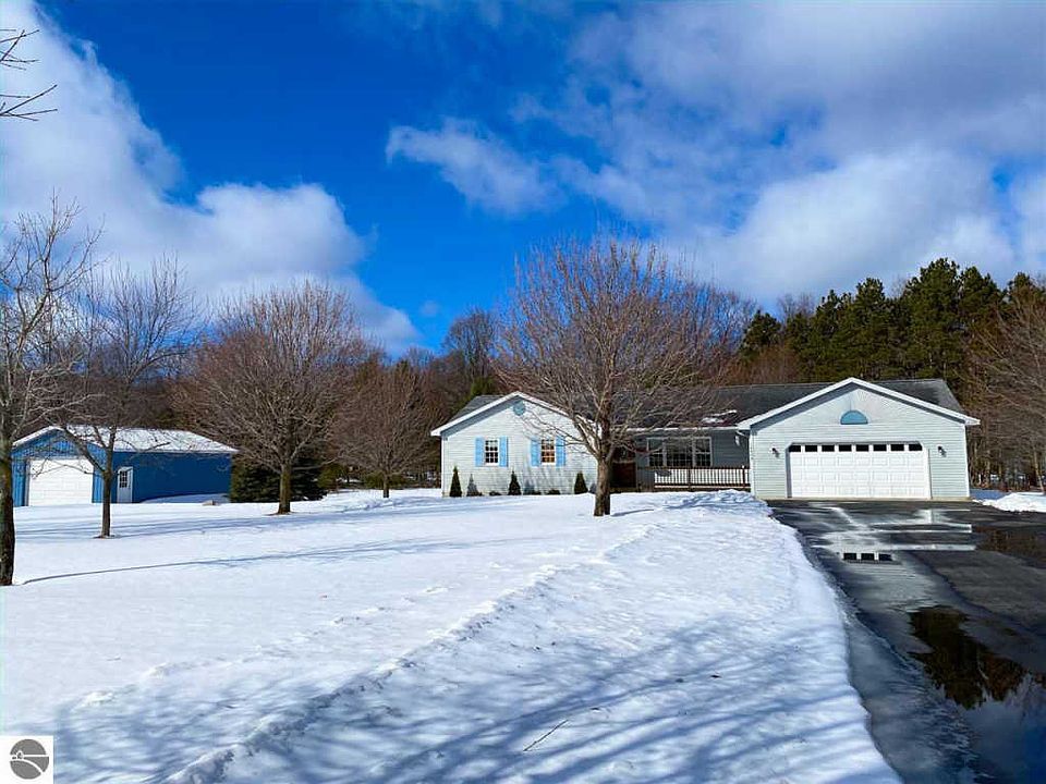 Quiet, country living on 5 acres yet close to area amenities - this 3BR/2.5 BA in the Lake Ann/Interlochen area is move-in ready! Very well maintained and beautifully updated over the past few years - newer plank flooring, appliances, custom blinds, solid wood doors; brand new natural gas furnace/AC and roof. Large primary suite with walk-in closet provides sanctuary at the end of a long day. Attached garage plus a 24 x 32 pole building all on paved driveways for storage & projects. Huge irrigated yard & a deck ready for entertaining. High-speed cable internet allows an easy work-from-home situation. Quick drive to Traverse City from here!