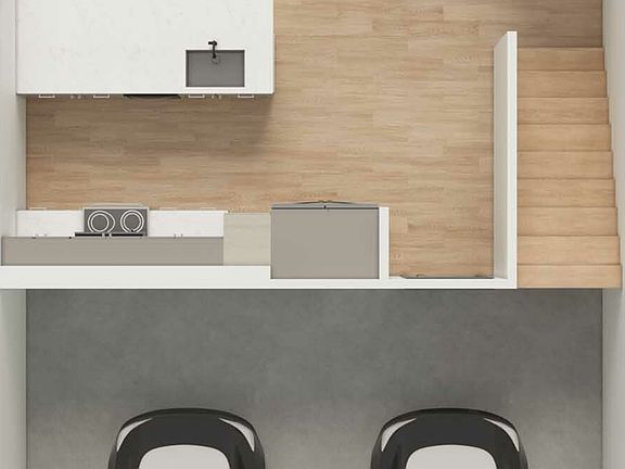2 BR, 2.5 Bath Two-Story Townhome; two-car garage; ground floor stoop