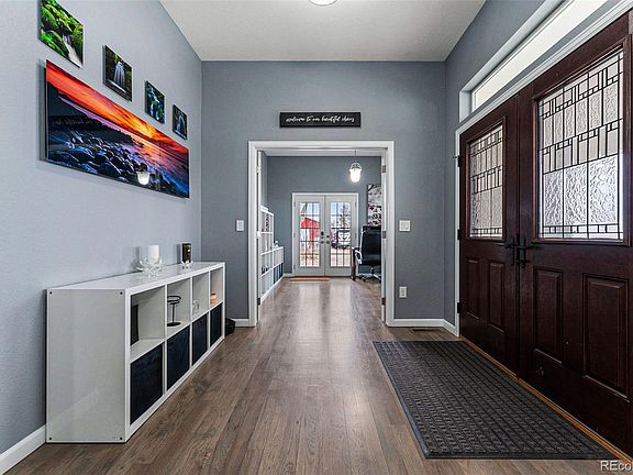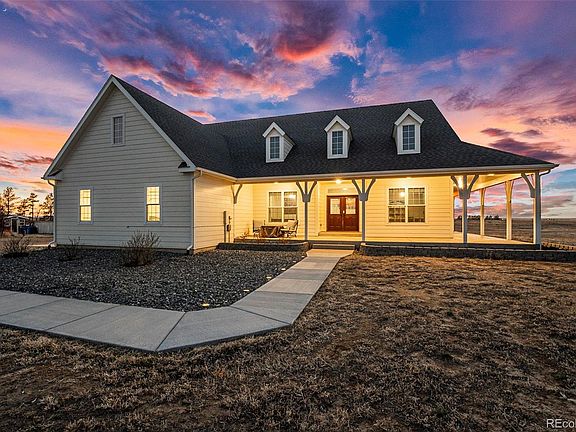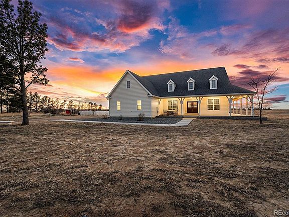 Escape the bustle of the city and experience the serenity of country life in this exquisite custom home nestled on 39+ acres, just a convenient 30-minute drive from the Denver Metro area with quick I-70 access. A power-gated entry welcomes you into your private sanctuary. This spacious 4-bedroom, 3-bathroom haven boasts refinished hardwood floors, fresh paint, and an open floor plan. The kitchen shines with granite countertops, stainless steel appliances, refaced cabinets, new backsplash and lighting, plus a stylish center island. Vaulted ceilings in the living room flow seamlessly into a heated sunroom, offering year-round enjoyment and breathtaking western sunset views. Work from home in the study with French doors, that can be connected by fiber-optic internet. Relax on the wrap-around porch or retreat to the secluded primary suite with an updated 5-piece bathroom and private balcony. An unfinished walkout basement, fenced dog run/chicken coop, new water filtration system, water softener, and new roof complete the package. Two expansive workshops totaling 3400 sq ft provide boundless space for hobbies or storing your toys. This is peaceful country living at its finest!
