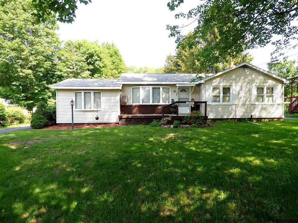Move right into this affordable 3 Bedroom Ranch. Freshly painted w/ sparkling hardwood floors.Large Eat-in kitchen, living room w/ bay window & sunken family room. Newer furnace & Central Air. This home sits on a .7 acre lot perfect for gardens, outdoor entertaining & more. Large detached 2 car garage & additional sheds for all your storage needs. Perfect for those looking for a country feel, but not far from shopping & highways. Quick commute to Albany. Schodack Schools. Taxes reflected do not include STAR