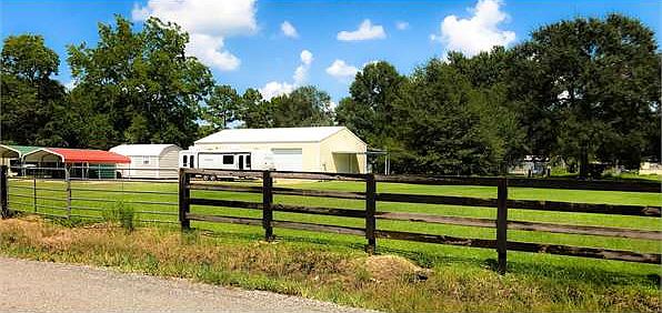 COMMERCIAL PROPERTY!! CALLING INVESTORS! Min. from I-10! Two lots on 1.82 acres. 12x24 ptble. bldg. 30x50 metal building with 4 roll up doors, 14x16 awning on S side and 21x50 awning in rear. Roughed in for the kitchen plumbing and 200 amp service. Flood zone AE, concrete is 12" above flood elev. Measurements are M/L.