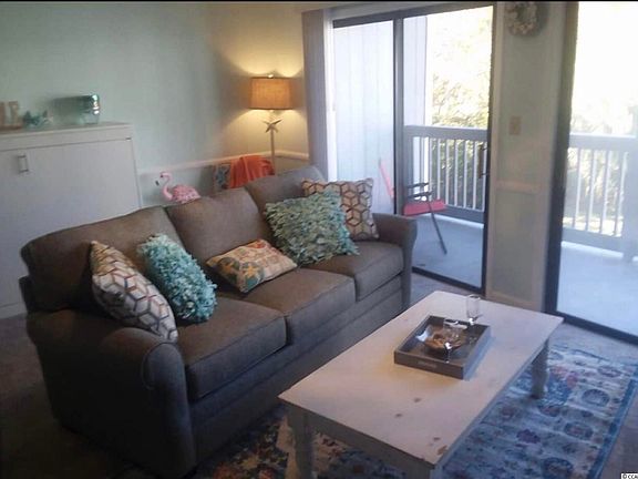 Adorable getaway only 1.5 miles to the beach! 2nd floor 1 Bedroom 1 Bath Condo updated cozy and very well taken care of at Golf Colony in South Myrtle Beach/Surfside Beach Area. Great view of our private pool for 3 building pod. New waterproof flooring, carpet and heating and air unit 3 years ago. It has a stackable washer and dryer and Twin Murphy bed included. Condo is furnished minus a few personal items. The exterior of our building has had a face lift with new roof and siding to give it a fresh look, should be finished soon. If you want a place to feel at home at the beach or as a short term rental this one is all ready to go! Schedule your showing today!