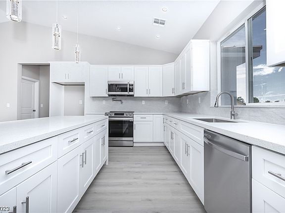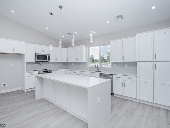 Absolutely Gorgeous, NEW 2023 Luxurious Custom Home, sitting on UNIQUE,NO HOA, Half Acre LOT sitting by the most desirable Lake View Executive Golf Course neighborhood in Pahrump.This Beautiful Property is 2235 SQF with spacious floor plan and vaulted ceiling including 3 Large Bedrooms-2 Masters,3 Full Bathrooms,3 Car Garage, Front Covered Porch, Courtyard, Covered backyard Patio, RV Parking and RV Connection.Home is fully upgraded featuring Custom Cabinets in the kitchen and all bathrooms, Quartz Countertops all around, undermount sinks, oversized waterfall kitchen island, New Stainless Steel Appliances,Modern Electric Fireplace,Extended Showers, Modern baseboards,LED lightning,Ceiling Fans,Custom shelving in the master bedroom closet, Water Resistance Vinyl Flooring all around, separate laundry room with a sink and cabinets and so much more. Close to SR 160. A MUST SEE!