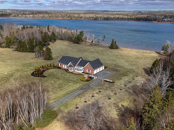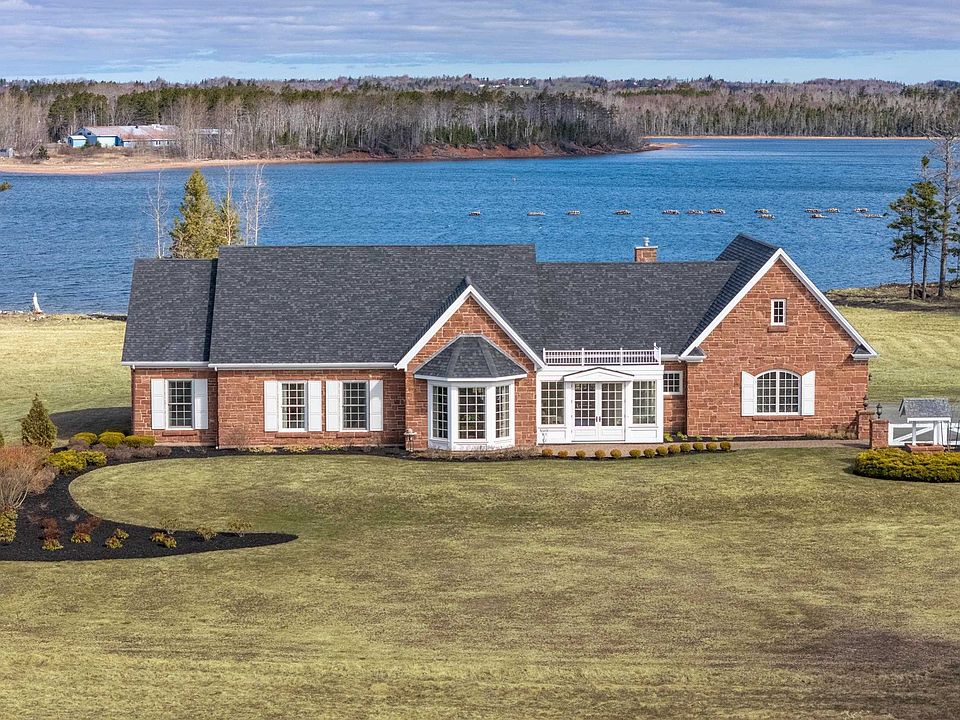A Truly One-of-a-Kind Property in Eastern PEI. Welcome to this exceptional custom built home on 80 acres in picturesque Murray River, offering over 600 feet of private waterfront. Designed by renowned Island architect David Lopes and built by the highly respected Gill Construction, this home is a rare find. The exterior is finished in Island Stone - a unique and timeless choice that speaks to its sense of place and craftsmanship. This one-level home is perfectly positioned for complete privacy, with no neighbouring homes in sight and private sandy beach access for boating, swimming, and enjoying the natural beauty of the river. Inside, youll find over 10-foot ceilings, in floor heating throughout, and high end finishes that reflect expert millwork and thoughtful attention to detail in every room. The spacious living and dining areas face the water, with large windows that frame the stunning view. Custom built-ins, a cozy fireplace, and wide open spaces make this home both luxurious and inviting. The chefs kitchen is designed for both function and entertaining, with plenty of space for casual dining and gatherings. The primary suite is a retreat in itself, complete with two walk in closets and a beautiful en suite. Two additional bedrooms share a Jack-and-Jill bathroom, offering comfort and privacy for family or guests. The lower level offers a large rec room, storage area, and an amazing wine cellar for the enthusiast. Add to that an attached 3-car garage, air conditioning, high-speed internet, and a lovely outdoor patio area - everything you need is here. The home is also equipped with a generator that connects automatically in the event of a power outage. Located in the charming community of Murray River, this home offers peaceful seclusion yet is just a short drive to Montague and under an hour to Charlottetown. It is the best of both worlds - luxury living surrounded by nature, in one of PEIs most scenic and beloved areas. All measurements approximate.