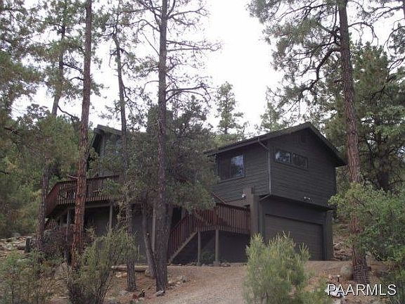 PRIVACY AT THE END OF THE ROAD - SPECTACULAR VIEWS (INCLUDING THUMB BUTTE) - TALL PINES - BOULDERS - 1 ACRE - ONLY 5 MIN FROM COURTHOUSE SQUARE & WHISKEY ROW - CITY WATER & NATURAL GAS - LIGHT/BRIGHT/AIRY - VIEWS FROM EVERY ROOM - 2 MASTER BEDROOMS/2 BATHS - 2-CAR ATTACHED GARAGE + WORKSHOP IN BASEMENT - WRAP-AROUND REDWOOD DECK (JUST RENOVATED, STAINED & SEALED) - RECENTLY SURVEYED/ALL CORNERS ARE CLEARLY FLAGGED. IT HAS A HUGH DECK THAT WAS ADDED IN 2015. THIS IS DEFINITELY THE RIGHT PROPERTY IN THE RIGHT LOCATION! MAKE IT YOURS!