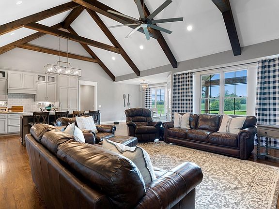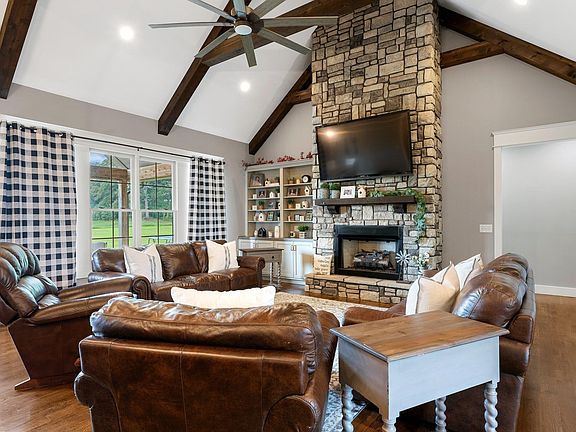 Don't miss this exceptional 4BR/4BA home nestled on 5 acres with plenty of advertising/ This one offers open concept living with plenty of natural light, hardwood floors, stone fireplace, vaulted beamed ceilings. Bedroom 3 has private bath. Basement offers bonus room with wet bar and full bath. Gorgeous covered back porch to watch the beautiful sunset and deer playing. call for private tour
