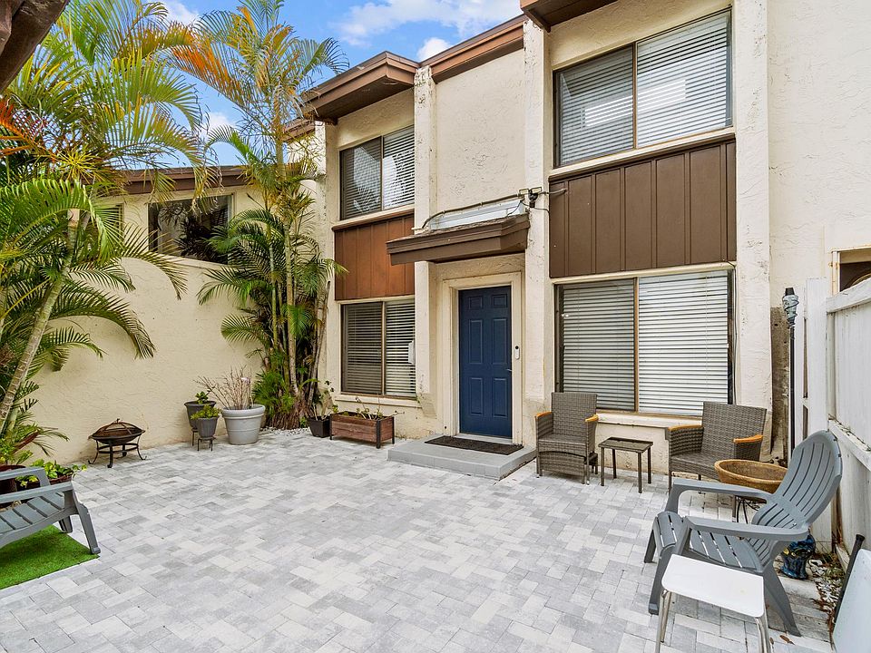 Welcome to this beautifully maintained 4-bedroom, 2.5-bath townhouse offering the perfect blend of comfort, style, and convenience. This home comes with it's own oversized garage and dedicated parking space. As you approach the home, you're welcomed by a privately fenced-in front patio with brand-new pavers an ideal spot to enjoy your morning coffee or unwind in the evening. Step through the keyless entry front door into a spacious, open-concept living area with tile flooring throughout. The kitchen features granite countertops, newer appliances, and flows seamlessly into a large dining area with a pantry for extra storage. The L-shaped layout of the home wraps around to a second outdoor patio space perfect for grilling, entertaining, or letting your dogs out to play. On the main floor, you'll also find a versatile bedroom and a convenient half bathroom. Upstairs, two well-lit guest bedrooms share a full bathroom, while the primary suite features a spacious layout and a beautifully updated en-suite bathroom. The community offers fantastic amenities including a saltwater pool and tennis courts.