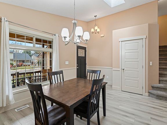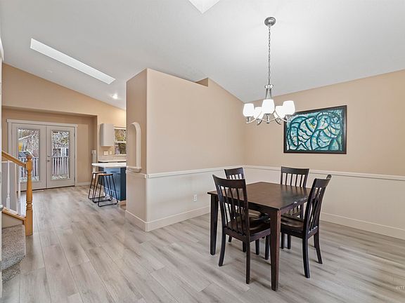 This massive four-car garage with a shop area offers plenty of room for hobbies, toys, and ample storage!! Imagine a carefree lifestyle where your day begins with a leisurely stroll to the Village in Meridian to enjoy a warm peppermint mocha, followed by a visit to Kleiner Park, and then a peaceful wonder back home for lunch. Situated on a prime lot with excellent curb appeal, this home is sure to impress! Inside, you'll find a spacious dining room with vaulted ceilings and a large, functional kitchen featuring brand new quartz countertops, abundant cabinetry, a generous island, and a corner pantry. Enjoy the cozy fireplace as you curl up with a good book and watch the snow fall outside. Retreat upstairs to the serene master suite, where you can unwind and recharge after a long day. It boasts a large walk-in closet, an updated master bath with dual vanities, beautiful tile work, and dual shower heads. For even more space, the basement offers two additional bedrooms.