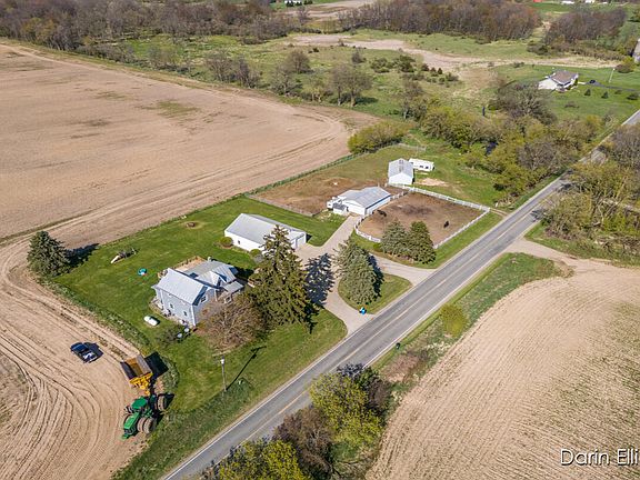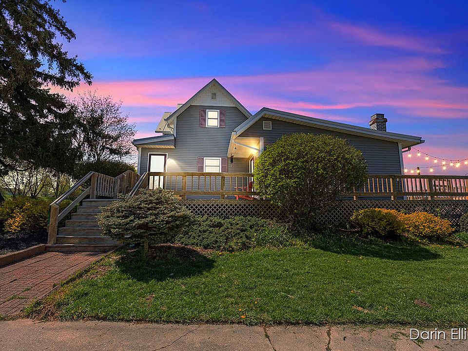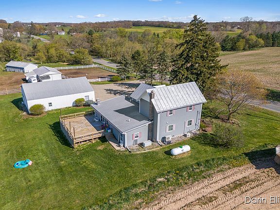 Awesome 2200 sq ft, 4 Bed, 2 Full Bath farmhouse with an unbeatable country setting. Nearly 3 Acres with meandering wooded frontage on Ionia County's award winning, Prairie Creek. Kitchen has custom built walnut cabinets, snack bar, all appliances and large open dining area. Step down Great Room/Living room has beautiful wood fireplace, new flooring, and access to huge wrap-around deck. Large Main Floor Bed and Main Floor Laundry. Home is mechanically sound including Geothermal heat and 2 main floor mini splits for multiple HVAC options. This incredible package includes a whole house GENERAC generator, 36x48 Pole Barn, 2 additional 24x40animal/horse barns with water, riding arena, and new fencing. Perfect horse/hobby farm! Great location on paved road and only a few short minutes to town!