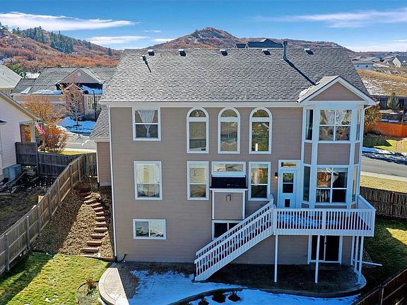 NEW EXTERIOR PAINT, Walkout basement, 3 car garage, & views! Gorgeous open floor plan with lots of windows & natural lighting, gourmet kitchen opens into the living room & fireplace, high ceilings, stainless steel appliances, real hardwoods, large master bedroom & 5 piece master bathroom, all upstairs bedrooms have walk-in closets, large fenced yard, 3 car garage, main floor office or bedroom w/ a 3/4 bath, walk out basement with a good layout for finishing, all appliances included. Walking distance to the MAC, hiking & biking trails, zip line & incline. Close proximity to shops, restaurants, Castle Rock hospital, and the Promenade. Quick easy access to I-25 and DTC. Move-in ready and available NOW.