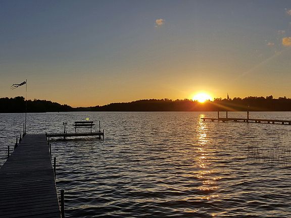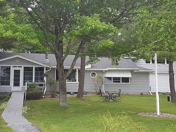 LOCATION LOCATION LOCATION Home with Million Dollar View. Year round lake home on the Eagle River Chain of Lakes, the largest fresh water chain in the world with 28 lakes. Western exposure with beautiful views of sunsets. 100 ft of sand frontage with 545+ ft to back of lot. Three bedrooms, two bathrooms, walk-in closet, modern kitchen with built-ins, large living room, three season front porch, laundry room, mud room off back entrance. Storage in boat house for pontoon or other craft. 2 and 1/2 car garage, attic storage, and additional 24x36 foot garage separate from the house. Natural gas, forced air furnace and also wood burning stove in well insulated home. Private well and septic, asphalt drive. Home is approximately 2,000 sq.ft. that was up-dated so age varies. The roof is 6 years old. Taxes are $2,660.02 for 2014. This property is zoned for business so it could be used for rental. In the winter, the Eagle River Snowmobile trails pass right by the end of the driveway. These trails are some of the best in the world!