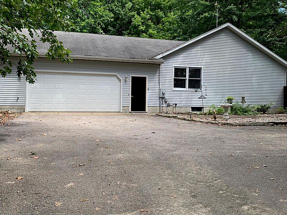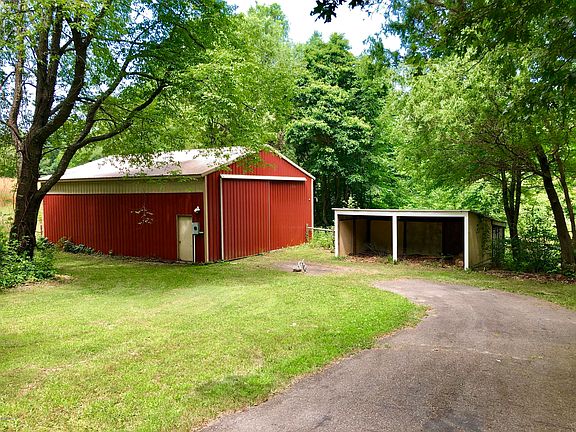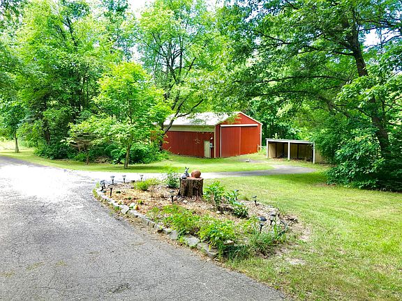 Over 3000 sq ft walkout home on 20 wooded acres with large pole barn, large 2-stall garage, 2 sheds, and a 6 ft backyard fence in a park-like setting. The main floor has a gigantic great room with vaulted ceilings, sky-lights, and a stone fireplace with insert, kitchen with oak cupboards, eating area, oak floors, 2 bedrooms, 2 full baths (including a deep jetted tub), laundry, and and two enclosed porches. The lower level has a family room, bedroom, full bath, partial kitchenette, non-conforming bedroom, laundry, storage, and a slider to patio area. Other perks are a hardwood forest, fenced pasture, field, hookups for wood boiler and infrared sauna, AC, 6 ceiling fans, and a dining room chandelier.