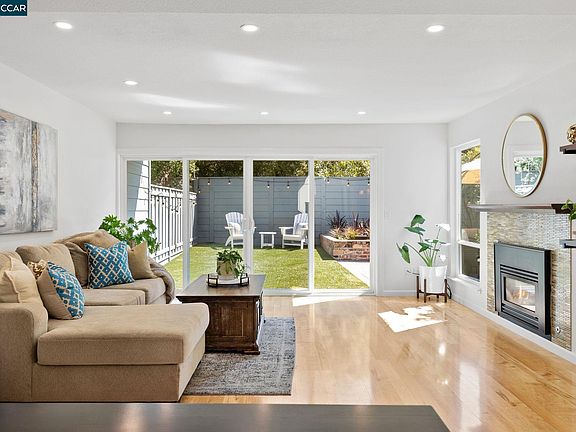 Nestled in the highly sought-after Village community of Walnut Creek, this lovely two bed, two and a half bath dream home has so much to offer! Beautifully updated, this home showcases open and airy living spaces, abundant natural light, soaring ceilings, a gorgeous primary spa-like bathroom, and a private yard that backs to Heather Farm Park. Enjoy effortless entertaining and easy everyday living with the seamless flow between the kitchen, dining and living areas. The updated kitchen features ample counter space, stainless steel appliances, a generously sized island, a built-in desk/office area, and large sliding glass doors that lead to the beautiful yard complete with a turf play area and paver patio ideal for outdoor entertaining. Upstairs, the two spacious sun-drenched bedrooms with vaulted ceilings offer peaceful retreats. The primary bedroom features a breathtaking spa-like bathroom, huge walk-in closet, and a private deck that overlooks the park. Enjoy direct access to Heather Farm Park along with wonderful proximity to John Muir, shopping, hiking/biking trails, BART and downtown Walnut Creek. The Village HOA offers a community pool and tennis court! Don't miss this incredible end-unit that combines functionality and stylish updates, with an unbeatable location!