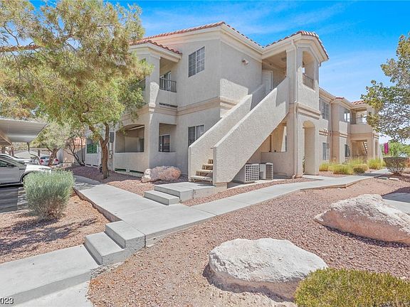 Incredible value for a fully upgraded, move-in ready condo in a North Las Vegas gated community. Spacious 2 bed, 2 bath layout on the first floor with massive walk-in closets. All appliances are new, including a never used refrigerator and dishwasher. Beyond appliances, other upgrades include custom shower heads, new ceiling fans, new carpet/stainmaster vinyl planking, refinished cabinetry and a new water heater. Private detached garage as well as one additional assigned carport. Unit includes full Ring security equipment for the front door and patio door. This is as turnkey as it gets at this price point. Community pool and gym included. Short drive to a comprehensive shopping center and Craig Ranch Park.