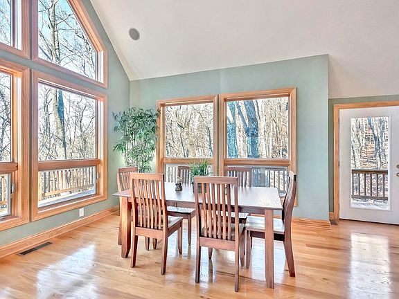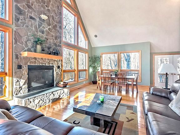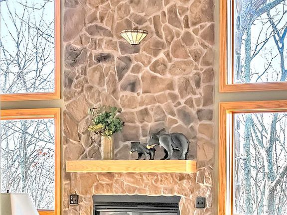 Another incredible value that cannot be duplicated at this price. Towering cathedral great room filled with glass and light looks over and adjoins Wintergreen s permanent open spaces. Wooded seclusion in summer, distant mountain views in winter. Granite finishes, wood trim, and wood floors reflect superb quality. Family room with additional fireplace at terrace level provides great livability for families of all ages. At less than 1 minute to Mountain Village, this home deserves your attention!