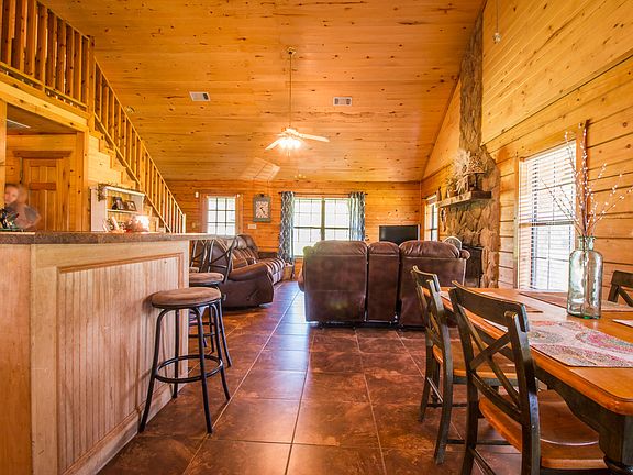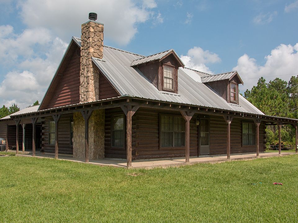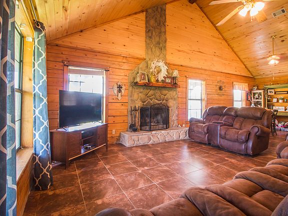 Follow the curving, tree lined driveway to an authentic log cabin nestled on over 9 beautiful acres. Vaulted wood ceilings and a wood burning stone fireplace welcome you into an open concept living/kitchen/dining area. Perfect for entertaining or just a cozy night in front of the fire. The home sits on 2.5 acres with the back 7+ fenced in for livestock. There's plenty of storage with two barns and a storage room off the carport. The pasture is partially wooded with a mix of soft and hardwood trees and also offers a fishing pond to while away a lazy, well spent, country afternoon. This home did not flood in Harvey.