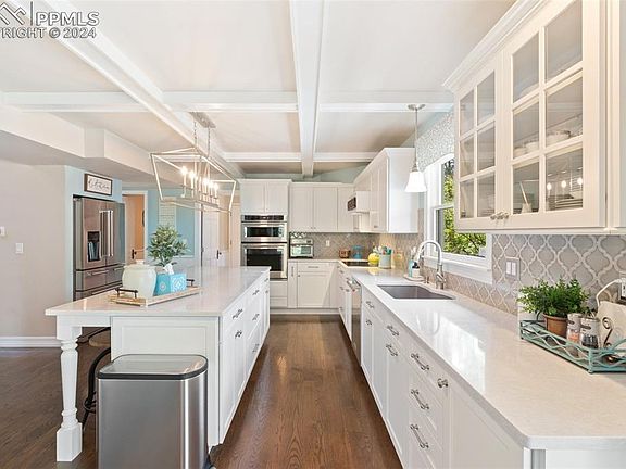 You are not going to want to miss this fully remodeled masterpiece. Nestled in the serene wooded neighborhood of Woodmoor, this stunning 4-bedroom, 4-bath home offers a perfect blend of elegance and functionality. The property boasts both a 2-car attached garage and a 2-car detached garage, providing ample space for vehicles and storage or as a workshop. As you step inside, natural hardwood floors grace the main floor, leading you to a charming front room adorned with crown molding and a cozy wood-burning fireplace. The expansive living room features vaulted ceilings, an additional wood-burning fireplace, an abundance of windows, and access to a spacious backyard deck. The beautifully landscaped backyard is a private oasis, complete with a fenced-in area, raised garden beds, a playhouse, and meticulously maintained greenery. Not to mention you are right by Toboggan Sledding Hill! The eat-in kitchen is a chef's delight, equipped with stainless steel appliances and a functional island, while the adjacent dining room, also featuring crown molding, provides an elegant space for formal meals. Upstairs, a versatile loft area awaits, perfect for an office or reading nook. The master bedroom is a luxurious retreat with a walk-in closet and an attached five-piece master bathroom. Two additional bedrooms and a full bathroom complete the upper level. The finished basement is a haven for relaxation and entertainment, offering a family room with a projector screen, large windows, and walk-out access to the backyard. Additional features of the basement include a fourth bedroom, a bathroom, and ample storage space, along with two furnaces to ensure year-round comfort. This meticulously maintained home is a true gem, combining modern amenities with timeless charm in a picturesque setting.