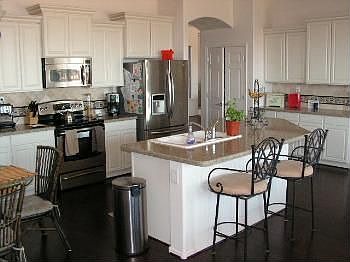 Amazing Family Home with so much to offer. Living area features real stone tile floors and 10'ceilings.Large,open kitchen has upgraded tile backsplash, granite countertops,staggered cabinets and large island. Oversized master suite, 'His & Hers' separate walk in closets,separate tub/shower,oversized drop in tub, mirrored vanity & raised covenants in bath. Split floorplan with master bedroom on one side of house and 3 bedrooms on other side. 4th bedroom is a guest suite with walk-in closet, attached bathroom and it's own doors to the back yard. Covered patio with ceiling fans surrounds 3 sided of the rear courtyard. Front yard features mature trees, large pull-through pavered driveway with tons of room for parking. Neighborhood with WHOA to maintain, all acre+ lots, RV parking OK and gated community. All of these great features plus pre-wire for ceiling fan, plumbing done for sink in laundry room, gated courtyard & 3 car garage with workshop. Detached 2100sq ft RV air conditioned garage with drive through doors and storage loft. 14' RV gate on opposite side of house for easy pull through.