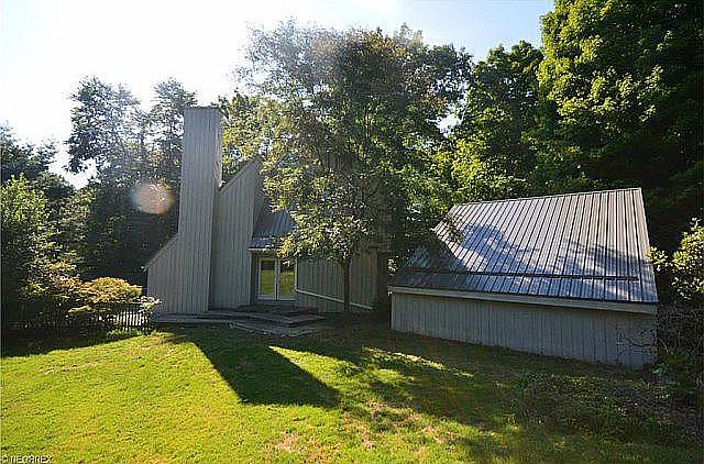 Unique contemporary with an open floor plan situated on 1.5 acres of privacy with great views. Architecturally designed with great detail and beautiful views from all angles. This open floor plan features a sunken great room with volume ceiling and sliding doors to the multi-level walk around deck and a spacious kitchen with a large eating area sized for either a formal or casual dining area. There is a first floor multipurpose room that can be converted to a good size of 4th bedroom since there is a full bath on first. There are three bedrooms and a full bath on second and then dont miss the third floor almost finished just ready for you to give finish-touch. 2.5 cars large detached garage. Also there is an unfinished walkout lower level. Great setting and location. A lot of potential for expanding.This is being sold as is. Updates since last purchasing: 1. New metal roof installed in May, 2016. 2. Gutter partially installed in May, 2016. French drain installation recommended for the rest of the roof 3. Third floor insulated, dry-walled, framed and created over 600 square ft. living space in May 2016 4. Picture window installed at the third floor installed in May, 2016. 5. Wall air-conditioner /heater at the third floor in May, 2016 6. Recess lights at the third floor installed in May, 2016 7. Jack-up 1st floor at the great room 8. Fuel tank removed from basement 9. County Auditor has approved the property tax reduction for at least 1year Please text at 440.829.3393; Email: lijwl@yahoo.com