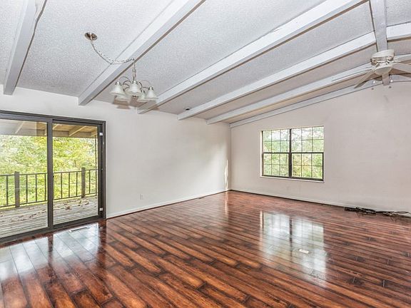 A secluded home on top of a large hill with great views. Surrounded by trees and woods with a creek running through the property. A split foyer home featuring a vaulted ceiling living room/dining room combo, kitchen, 2 bedrooms and 1 full bathroom on the upper level. The lower level walk-out has a family room with fireplace, 2 bedrooms, 1 bathroom and utility/laundry room. A deck off the living room and 2 detached two car garages. This is a Fannie Mae HomePath property.