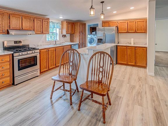 • Kitchen Island, Granite Counters, Double Vanity, Tub, Separate Dining, Cathedral Ceiling(s), Open Floorplan, Vaulted Ceiling(s)