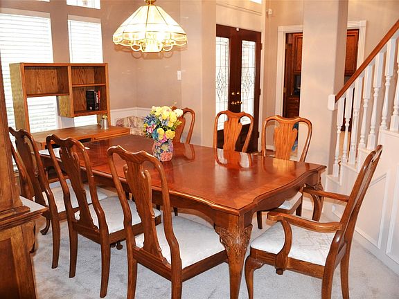 * * * * * * Ready for quick move in. Two story entrance, cascading double staircase. Large tiled island kitchen, both formals with office off of foyer. carpet and wood floors. Master bath has double sinks, whirlpool tub and separate shower. Gorgeous stone and brick backyard with patio and levels of flowerbeds, trees and fire pit. Lots of storage space. * * * * * *