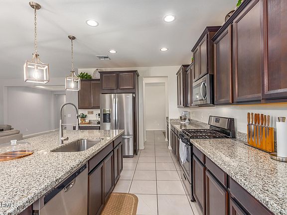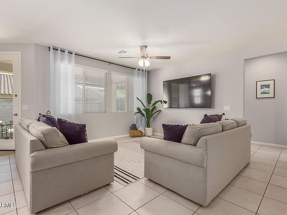Well maintained lovely 4 bedroom, 2.5 bath, 2,522 sqft home with spacious den/formal dining, and distant mountain views in the welcoming community of Windrose. Once inside, appreciate the split open floor plan, soothing neutral color palette, luxury ceramic tile flooring in all the right places, upgraded lighting fixtures, and designer touches throughout. Fantastic eat-in kitchen featuring SS appliances: gas cooktop range/oven, built-in microwave, dishwasher, along with gorgeous granite countertops, a walk-in pantry, butler's station, staggered height elegant cabinets with crown molding, and a large center island with breakfast bar open to the great room making the perfect setup to entertain family and friends. The spacious den is just steps away and could easily be used as a formal dining area expanding the entertaining space. From the great room, you have convenient access to the backyard featuring a covered patio, and ample room to create your own personal backyard oasis. The possibilities are endless with this special space. Back inside, wander over to the primary bedroom with an ensuite bathroom highlighting split double sinks, fantastic walk-in shower, separate deep soaking tub, private toilet, and a large walk-in closet. The three secondary bedrooms offering walk-in closets, a guest bath with shower/tub combo, a wonderful laundry room, along with the 3-car tandem garage round out this incredible floor plan, so be sure to take a look and start imagining filling the bedrooms with fun and laughter. Close to walking/biking paths, multiple community parks, top-rated schools, and easy access to Loop 303 makes this a great place to call home. Make an appointment today before this one slips away!