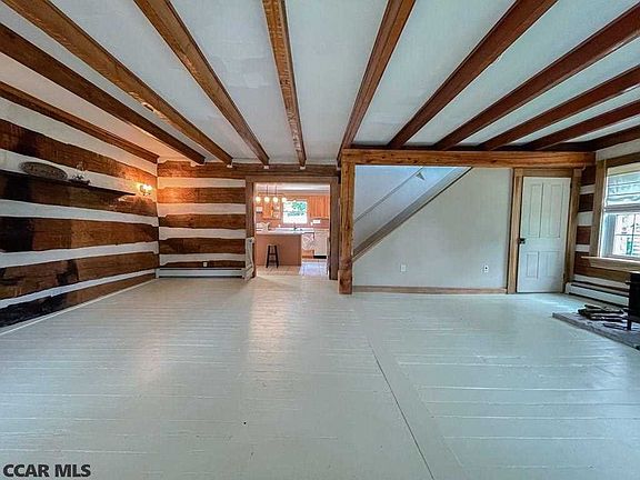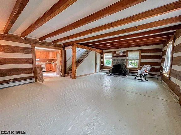 Brand new roof added in July 2022! Beautiful, move in ready historic home in the heart of Warriors Mark. This home boasts the charm of a log interior with the appeal of modern updated bathrooms oversized kitchen with large eat in area. One large bedroom with en suite bath on the main level, with three good sized bedrooms upstairs. A claw foot tub and modern finishes complete the upstairs bath. Situated on a 0.27 acre, fenced in lot with two outbuildings, there is no shortage of space. Enjoy your own little piece of local history here!