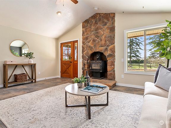 Move in ready hobby farm in great central location, minutes to Bham or Lynden - in Lynden SD! On just under 1.5 acres +/- this 1 story rambler has beautiful cedar siding & a great floor plan. Vaulted ceilings & cozy wood burning fp great you upon entry into living room, open to dining & eat-in kitchen. Family room off back of dining w/gas fp & tons of natural light. Split living w/owner's suite on 1 side of home w/ensuite 3/4 bath boasting gorgeous tiled shower & tons of cabinet space. 2 more bdrms & full bath on other side. Large shop has built-in work area plumbed for potential kit/bath & BN roof, plus rv bay. Stable perfect for hobby animals w/fenced in pasture. BN carpet in bdrms, windows, newer water heater & more. Truly a must see!
