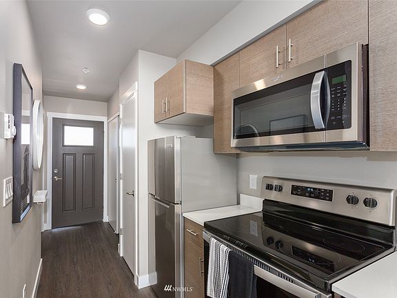 Almost new studio apartment in the Salmonberry Two Complex! This unit is designed with an efficient floor plan, modern amenities and luxury touches. Features include high end cabinetry & countertops, ss appl's, tile backsplash, kitchen island and a host of other upgrades not typically found under one roof! Enjoy convenience of your own w/d. Central & unique location in close proximity to key amenities such as mass transportation, grocery, Fairgrounds, and historic Downtown Lynden.
