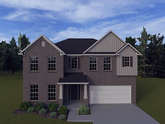 This Wheeler III is a spacious home with six bedrooms and four full baths. There is a guest suite on the first floor. The living areas on the first floor follow an open concept design, and include a versatile flex area. An island kitchen and spacious breakfast area adjoin a large family room with a fireplace, all overlooking the rear yard. A drop zone is located at the entry from the garage for additional organization. The large upstairs primary bedroom features vaulted ceilings, a luxurious bath with double bowl vanity, separate shower, and a freestanding Effie tub, plus a spacious closet. Four additional bedrooms are located upstairs. Bedroom #4 has its own private bath and a walk-in closet. The utility room is located upstairs for convenience and includes a folding counter. Additional features include a covered patio, covered front porch, and hip roof design.
