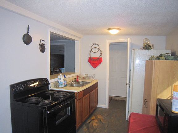 NICE VACATION HOME KITCHEN, PANTRY CABINET, DOUBLE SINK, BREAKFAST BAR WITH PASS THROUGH WINDOW, LAUNDRY ROOM, DINING AREA, SUNROOM WITH LOTS OF WINDOWS, NICE VIEW! TWO BEDROOMS AND TWO BATHS! WOOD BURNING, BRICK FIREPLACE, JACK AND JILL CLOSET, STORAGE IN ATTIC AND ABOVE LAUNDRY ROOM.