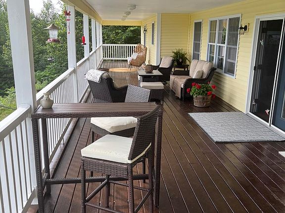 A 'MUST SEE' to appreciate the location, features, amenities and layout of this inviting ranch style home. This is NOT your typical ranch. The builder built this thoughtful home for himself & his wife. With sweeping views of the surrounding hillsides, the rear covered porch, the off-street location this property is a true oasis to come home to. Step inside the inviting front entry to an open floor plan that sprawls out ahead.. There is a custom kitchen w/breakfast nook, and a formal dining space. The master bedroom, w/ensuite bath, shares the hillside views and has its' own access door to the rear porch. The full, daylight, walk-out basement features an apartment w/full bath that is great for guests or parents/children who might be living with relatives. Step out of the apartment onto stamped concrete patio area, perfect for hot tub where the same sweeping views are there to greet you along with the deer/wildlife! With vinyl siding and metal roofing, this home is low maintenance. Furnishings available/negotiable. This property also comes with an addtl., adjacent, 3 acre building lot already designated as its own lot on town records. Total acreage 6.77ac.