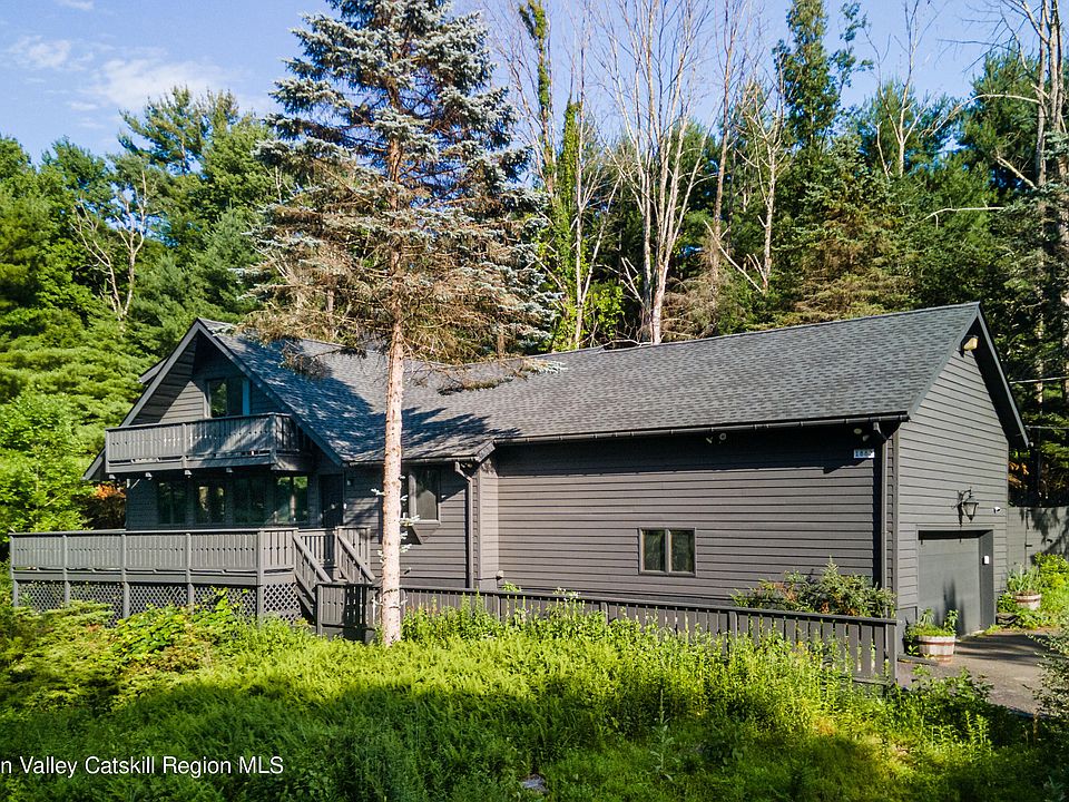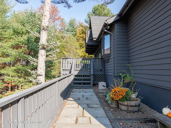 This striking home is sited uphill from the road on 1.2 wooded acres with stunning views of Mombaccus Mountain. Whether you are entertaining on the large front deck, cooking and gathering in the recently renovated kitchen, relaxing by the warm fireplace in the living room, lounging with a book in the screened porch, or tending to the beautiful shade garden in the back, this property is an ideal mountain retreat.