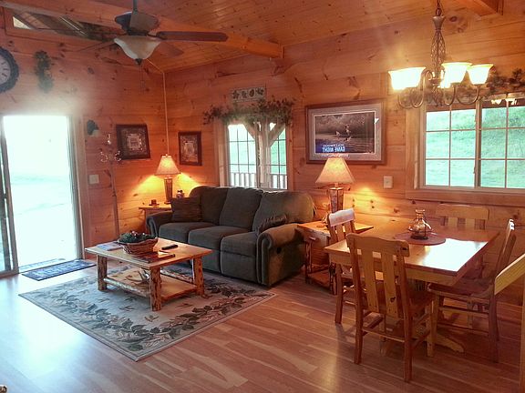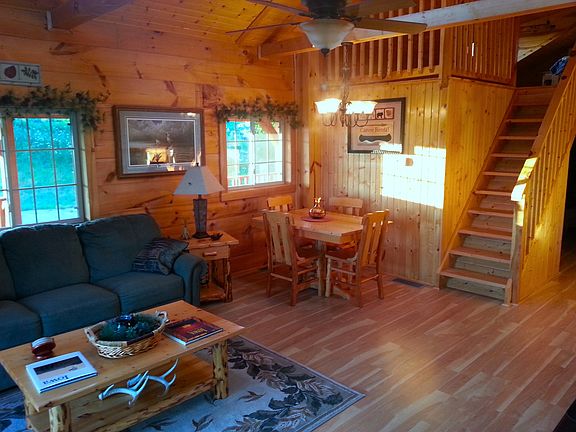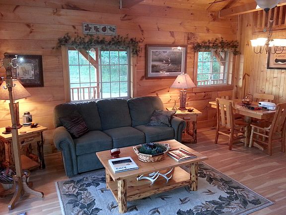 As you approach the cabin we call Burr Oak Hideaway, you will not want to alarm the birds or the deer that make this part of Deer Tracks their home. Set on the edge of a hill, you will be overlooking a huge burr oak tree that serves as a gateway to the wooded glen below. Whether you spy on this part of creation through the patio doors located in both your bedroom and living room- or from a full length screened in porch- you will find it easy to blend into this tree level hideaway. Retreat, relax and restore yourselves in this storybook setting. Private 4 Acre lake with dock below.Inside Burr Oak Hideaway you will find:? Utensils, pots and pans for cooking?Tastefully, fully decorated cabin theme w. special lighting? Living room with a Queen Sofa- with built in recliners? Amish built TV Stand with TV and DVD player? Rustic Pine LR End Tables and Coffee Table? Amish built dining table and chairs? Electric stove, refrigerator, and microwave? Lower bedroom with Queen size bed and built-in closets? Single lofted cabin with Queen size bed (comes with built in drawers)? Double Hickory rocker? Large bathroom with shower? Insulated floors and ceilings? Utilities include: LP Gas, forced air furnace and wood burning rustic stove in LR and 40-gallon hot water heater15 minutes from Prairie du Chien, WI, restaurants, Cabelas, and shopping40 min to DecorahOwner pays electric, gas, cable, and snowplowing