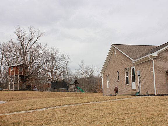 Brick ranch, large living room, dining room, kitchen, utility room, 2 additional rooms that can be used as bedrooms or for recreation. The home has hardwood floors and ceramic tile throughout. A front porch and a large patio that extends the length of the home. There is a play area for children and a large fire pit. The home is sited on approximately 6 acres with fencing on side and rear. The home is heated with an outdoor wood boiler, also there is a electric heat pump and a propane heater for additional heating options. The home is located in Harrison County, 8 miles outside of Cynthiana. The home is 8 miles to I-75 and 15 miles to Toyota. The home is zoned agricultural so livestock is permitted.