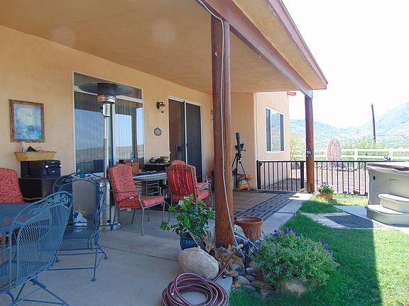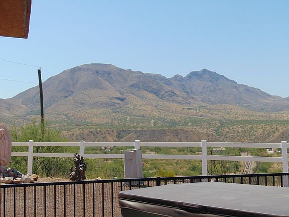Views that are amazing of the surrounding mts. Southwest decor interior, on over an acre. Raw iron fencing around back porch and Spa. Great use of windows and French door to bring the view inside. Split floor plan with owners suite at one end and other bedrooms on other side of house. Peeled post accents inside accompany the pleasing southwest colors. Oversized 3 car garage ( 693 sq ft) and don't forget that recently added COVERED RV parking slab. All about the views from this wonderful home on 2 lots! . Sweeping views of the mountain ranges. Great, open floor plan. Built in 2005! Two Double gate entry to property. Plenty of space for additional guest House etc. Shed for extra storage on side yard. Landscaped back yard with spa. Lot sits on end of road with vacant land beyond. Short distance to freeway and downtown, and borders the Tubac Foothills. Must see to appreciate!.