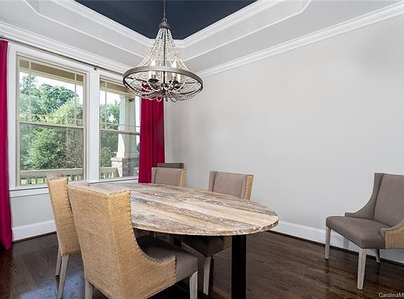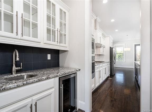 Stunning former model home within walking distance to both Bailey and WA Hough schools. Neighborhood is fully built with great amenities! Community pool, playground, tennis courts, sport court and walking trails. Home design has two master suites: 1st on main floor with two walk-in closets, upgraded tile shower and relaxing tub; 2nd master suite upstairs with large walk-in tiled shower. Kitchen designed with all the extras for entertaining: white cabinets, large kitchen island, quartz and granite counters, stainless appliances, gas cooktop, wet bar, beverage refrigerator, and breakfast nook. Upstairs has two additional bedrooms with large bonus room. Main floor office has large walk in closet/storage and could be used as a 5th bedroom. Garage was used a sales office and has additional finishings including a Split HVAC unit. This home will impress with too many extras to list.