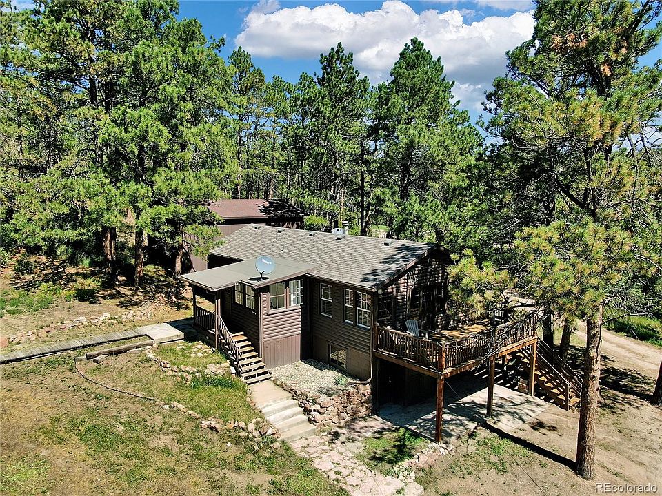 Looking for a property with TONS of opportunity? TWO LOTS for a total of 3+ acres for an investment/rental, new construction and/or multi-generational living. Lot 2 is 1.67 acres featuring two separate log cabins (SF & beds/baths listed is for BOTH cabins) plus a detached huge workshop/RV garage. Lot 1 is a 1.4 acre separate vacant parcel ready to build or hold for future needs. Both are treed lots with tall pines and scrub oak and front range views. Close to all amenities but feels like you are worlds away! Property was originally part of a historic ranch. Homes have been renovated & upgraded while maintaining the cabin charm. Utilities on each home are separately metered. Newer roofs. Laundry hookups in both homes. Smaller cabin offers true main level living with 2 beds, private office & 2 baths (1180 SF) plus a "drive under" garage/storage area and a newer free standing gas heater for central heat. Main cabin features a wonderful deck with views, forced air gas furnace, 2 beds/1 bath, (1173 SF + unfinished space in basement that includes a 2 car tandem garage), and "other rooms" include a sunroom (enclosed back porch) and charming enclosed side entry porch. Newer, detached 32' x 20' building is perfect for a workshop, business, storage or RV parking with a 12' garage door & access from State Highway 105. Adjoining vacant 1.4 acre parcel is a separate parcel and is included with this listing but could be sold separately. This property has no HOA and is located in unincorporated El Paso County (not the Town of Palmer Lake). Zoning may allow a home business, horses, up to two residences, or a duplex. The possibilities are endless! Outdoor activities at the lakes and in Pike National Forest are all within a mile of this property for biking, hiking, fishing and kayaking. Enjoy the best kept secret and the small town way of life in the Tri Lakes area.