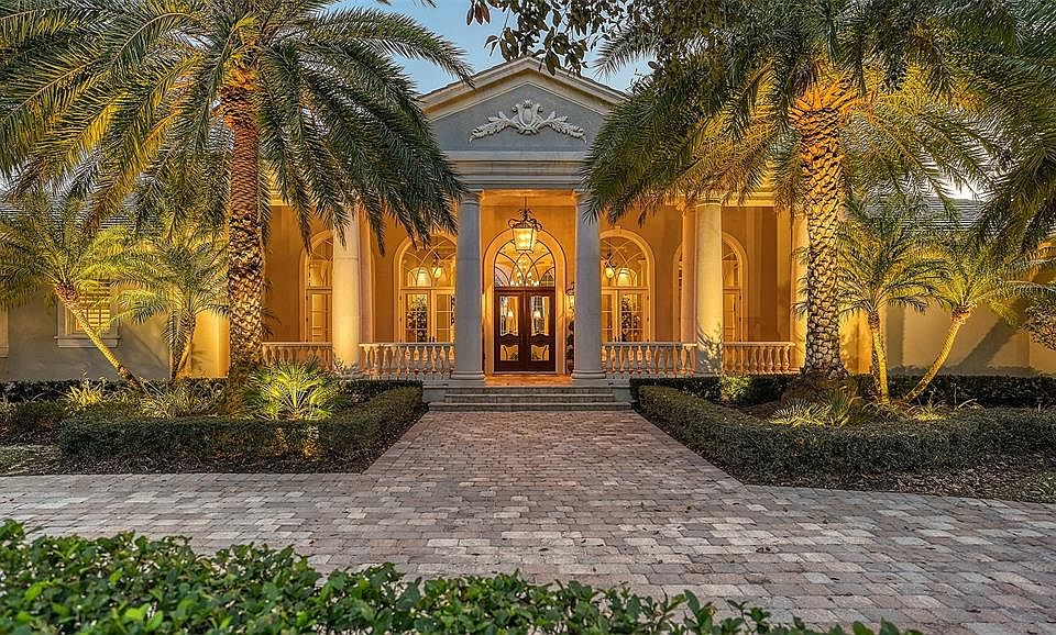 Resplendent in southern charm and elegance, this custom sprawling estate is built by Anchor Builders and majestically set on a premier southwest facing one-acre homesite in the prestigious Concession Golf and Country Club. With stunning lake views and an exceptional level of quality crafted with a unique combination of fine woods, stones and glass, the perfect setting has been set for owners, friends and family to enjoy exclusive luxurious living. Providing plush accommodations, peaceful privacy, and convenience, this residence offers an exquisite owner’s wing, secondary master retreat, two additional guest suites, as well as primary and guest laundries. Entertaining reaches new heights in the grande gathering room, professional kitchen, theater, bar/entertainment kitchen, and solarium. Indoor and outdoor living blend seamlessly with disappearing corner sliders uniting a stunning great room to an impressive outdoor lounging area. Work from home options include sophisticated study with bar and media wall or quiet library with built-in office. Exterior of home features a spacious front veranda, huge covered lounging area with fireplace, resort-like grounds, saltwater pool and fountain, private dining patio, and an ivy-walled motor courtyard. Additional features include custom ceiling details and woodwork throughout, gallery hall, extensive upscale built–in features, indoor and outdoor fireplaces, outdoor kitchen, high-end appliances throughout, 4 A/C zones, two A/C storage rooms, north (A/C) and south garages, electric gate to motor court, and so much more. Concession has been ranked as one of the best private golf clubs in the country. The wine connoisseur is sure to enjoy The Bistro dining, which offers over 365 fine wines with a 90+ rating. For those looking to enjoy an active lifestyle, there are miles of picturesque paths available for running, walking, and bike-riding. Concession is a short drive to Lakewood Ranch and Sarasota shopping, dining, beaches, cultural venues, top-rated schools and medical facilities. Primary bedroom chandeliers do not convey.