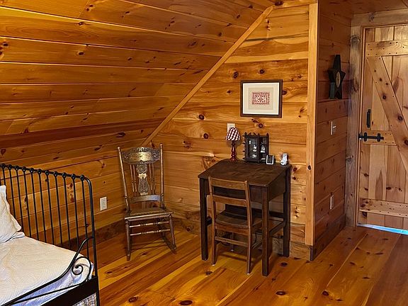 - Cedar Closet(s), Ceiling Fan(s), Chair Railings, Combination Kitchen/Dining, Entry Level Bedroom, Exposed Beams, Family Room Off Kitchen, Open Floorplan, Bathroom - Stall Shower, Walk-In Closet(s), 2 Story Ceilings, 9'+ Ceilings, Beamed Ceilings, Cathedral Ceiling(s), Wood Ceilings, Wood Walls