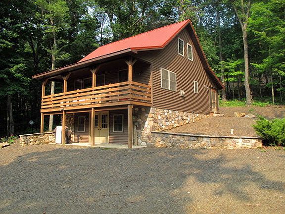 Like new and in excellent shape, this beautifully crafted chalet style summer home is ready for new owner. Tucked away in the woods near Lake Raystown Resort, Trough Creek State Park and Tatman run boat launch. 2 plus acres on private drive. Cabin has handcrafted kitchen cupboards, pine floors, ceiling and walls. Partial vaulted ceiling. Loft and 3 bedrooms. One full and two half baths. Front raised deck and rear screened in porch. Full walkout basement partially finished with laundry. Located in Blue Jay Acres near Todd. Low maintenance design