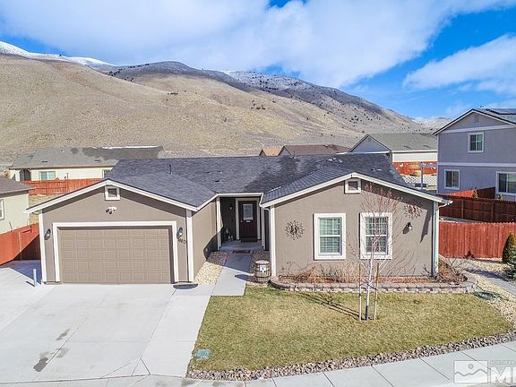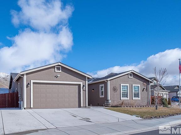Better than new! Well-upgraded 1-story on a beautifully & fully landscaped, .27 acre cul-de-sac lot w/ mountain views, RV access/parking, storage shed, custom lighting, covered paver patio, vegetable garden, lush lawn, berries in front, a wide variety of trees including maple, red oak, plum, nectarine, peach, 4 kinds of apple. $75k in exterior improvements. Open kitchen boasts granite slab counters, cherry cabinetry, center island w/ breakfast bar & stainless appliances. Bathroom granite counters., Additional interior features include waterproof flooring in high-traffic areas, high ceilings & neutral-toned interior paint, a custom front door, wash basin in the laundry room, upgraded plumbing & lighting fixtures & a high-end large ceiling fan in the living room. Oversized driveway & finished garage w/ epoxy floor. Stucco exterior. Rain gutters. Located in the desirable community of Woodland Village with community center, excellent gym, bar & grill, walking paths, parks (including a dog park) & one block from BLM land with endless off-road adventures.