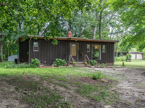 You'll find peace and quiet as well as convenience in this 2 bed, 1 bath ranch style home on 5 acres. Across the street from Cornwell's Turkeyville, this home offers the convenience of quick access to I-69. The private 5 acre parcel also includes a private pond. 2+ car detached garage would be a great work shop area. New natural gas hook-up and new natural gas forced air furnace just installed.