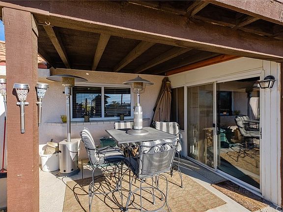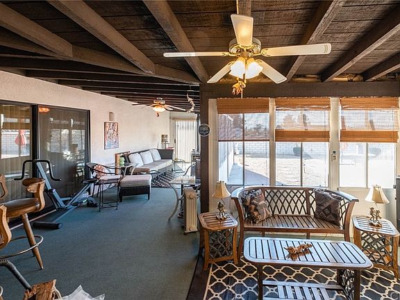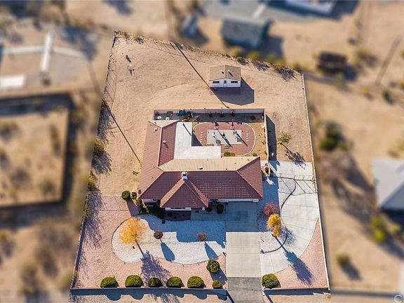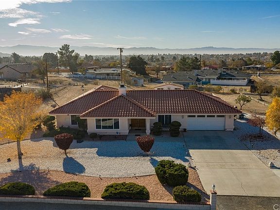Got "man toys" (trucks, quaids, RV, motorcycles)? This spacious custom single story home located in the Desert Knolls/Apple Valley situated on nearly 3/4 acre of land will perfectly accommodate your "toys." This home features beautiful shining bamboo floors, plantation shutters, dual fireplace, 3 spacious bedrooms, and 2 wonderful baths each with double sinks, master suite has walk-in closet, and a soaking jet tub. Formal dining room, formal living room, large kitchen with walk-in pantry, breakfast bar, and lots of cabinets. Great indoor large laundry room with a sink. Relax in the comfort of the inviting family room with a fireplace. Entertain family and friends in the enclosed spacious enclosed patio (could be used as a 4th bedroom - heater & cooler) as you look out to the 3/4 acre of land. Home, also, features a large RV parking and a freshly painted walk-in shed. Square feet is approximately. Buyers to satisfy themselves.