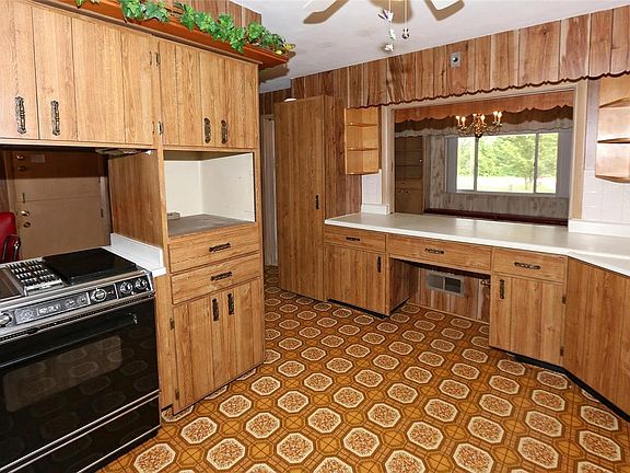 Fantastic Opportunity! This mostly brick ranch home sits on 3.05 gorgeous level acres and offers 2600 total sq. ft. With updating this home could really be something special again. This home offers a full partially finished basement, 2 car garage, 4 car attached carport, and a large outbuilding. Open floor plan with a brick fireplace/gas pellet insert with built in bookcases and storage seats and retro bar. There is a huge covered front porch and an enclosed back porch off the kitchen, perfect for watching the wildlife. Seller has never occupied the home and is not sure if there is hard wood under the carpet. Home is being sold AS IS...Seller to make no repairs. Zoned NU - see attached description (Non Urban - can be used for more than just residential)
