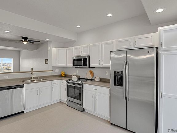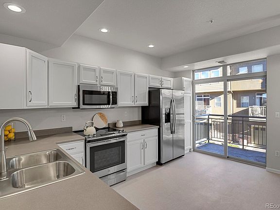 Fantastic, Updated & Spacious 2 Bedroom, 2 Bath, 2 Car Tandem Garage Condo on Greenspace with Mountain view! Wonderful Light & Bright Floor Plan with High Ceilings. New Interior Paint, New Carpet and Linoleum, Stainless Steel Appliances, New Blinds, New Light Fixtures, New Sinks & Faucets. Beautiful Open Kitchen with lots of cabinet space and balcony access, Large Living Room w/gas fireplace. Central A/C, Spacious 2 Car Tandem Attached Garage. Primary Suite with 2 closets & balcony access. Clean and move-in ready! This condo lives like a townhome with no one above or below the unit. Washer & Dryer included.