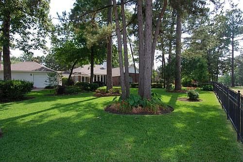 SPACIOUS DAVID WEEKLY ONE STORY LUSHLY LANDSCAPED OVERSIZED LOT BACKING TO GOLF COURSE AND SIDING TO RAVINE LEADING TO LAKE HOUSTON!