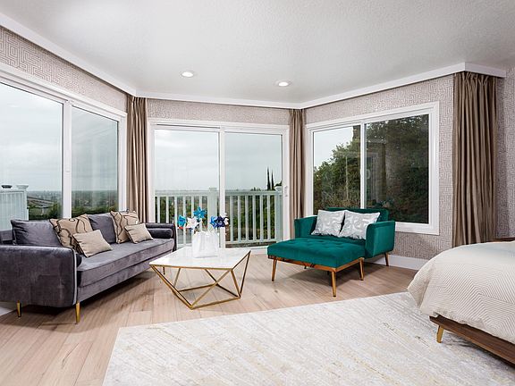 Interior Newly REMODELED in 2023 Mid Century Modern Masterpiece with Beautiful City LIGHTS Views and dreamy SUNSETS. Custom built home in a GATED area in North Tustin Hills. EXTREMELY high soaring ceilings with brick fireplace in SPACIOUS living room plus dining area for LARGE family gatherings. Nice sized kitchen with EATING area, quartz counter tops and wood cabinets. City Lights view from MASTER suite balcony, dual CULTURED marble sinks, SEPARATE shower and toilet room with top of the line TOTO Bidet Smart Toilet. Custom white oak spacious WALK-IN closet with led lights. Convenient INSIDE laundry with SINK and built-in cupboard and counter space for folding. All on ONE level with garage and EXTRA storage under the main floor. Wraparound PORCH to sit on in the evenings while you're waiting for your wagyu steak that's sizzling on your private BBQ, outdoor built in kitchen with BBQ grill, smoker, and pizza oven. Garden with built in drip system, tenant can add herbs and other plants they would like. 3 outdoor fire pits, with lounge chairs, outdoor dining table set for family gatherings and enjoying the view. Outdoor Furniture included and anything attached to the walls. Washer dryer included. Drapes, light fixtures, chandeliers, mirrors, and shelves included. Smart fridge and dish washer included, 3 ovens included, microwave included. Filtered water sink dispenser system included. ADT SECURITY on every window and door throughout the house. Ring security cameras included. Yale keyless front door entry with App access. MyQ remote-less garage door access . Fully automated home system. Real white oak hardwood floors through the house, custom built in cabinets and closets in every room, everything was remodeled custom, feel like you're always on vacation in this gorgeous one of a kind North Tustin estate.