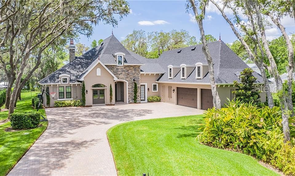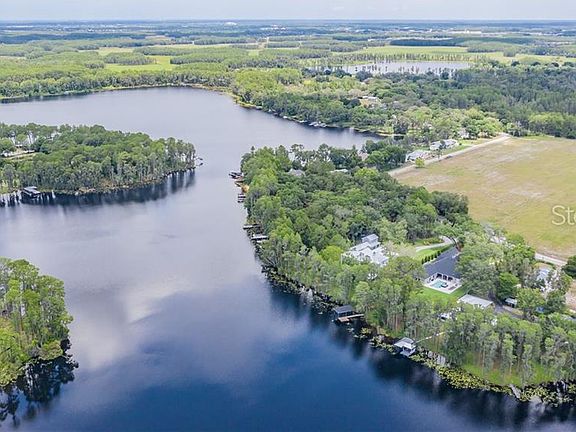 SPECTACULAR WATERFRONT HOME!! This gorgeous one story pool home built in 2017 by Adobe Homes is loaded with upgrades and features 5291 sq ft of living space, 5 Bedrooms/5.5 Baths/Den/Bonus Room/Media Room on 2.13 acre lot and located on Island Ford Lake. The attention to details in this home are magnificent. Formal Living/Dining with beamed ceiling, gas fireplace and triple French Doors. Marvelous Kitchen that features an expansive center island, 42" cabinetry, top of the line stainless steel appliances to include a six burner gas range, wine cooler, granite, huge walk-in pantry, and a spacious dinette/cafe. Large Family Room (21X23) w/coffered ceiling and sliding glass doors. Oversized Master Suite (16X22) with two walk-in closets, French Doors, tray ceiling and a luxurious bath that feels like a spa with dual sinks, stand-alone tub and a walk-in seamless shower. Home also features a Bonus Room and a large Media Room (20X17) that could be used as a 6th Bedroom with its own full bath. Two of the secondary bedrooms have their own full bath. Secondary bedrooms are spacious with ample closet space. Phenomenal outdoor area with kitchen, sparkling salt water pool/spa, huge backyard, dock and lake. Other outstanding features include upgraded laminate flooring throughout the home (No Carpet), All Bedrooms closets upgraded w/custom carpentry real wood built-ins; crown molding, private gate, property entirely fenced, and laundry room w/utility sink and cabinets. NO HOA/CDD FEES. Lakefront Living at its Finest!!